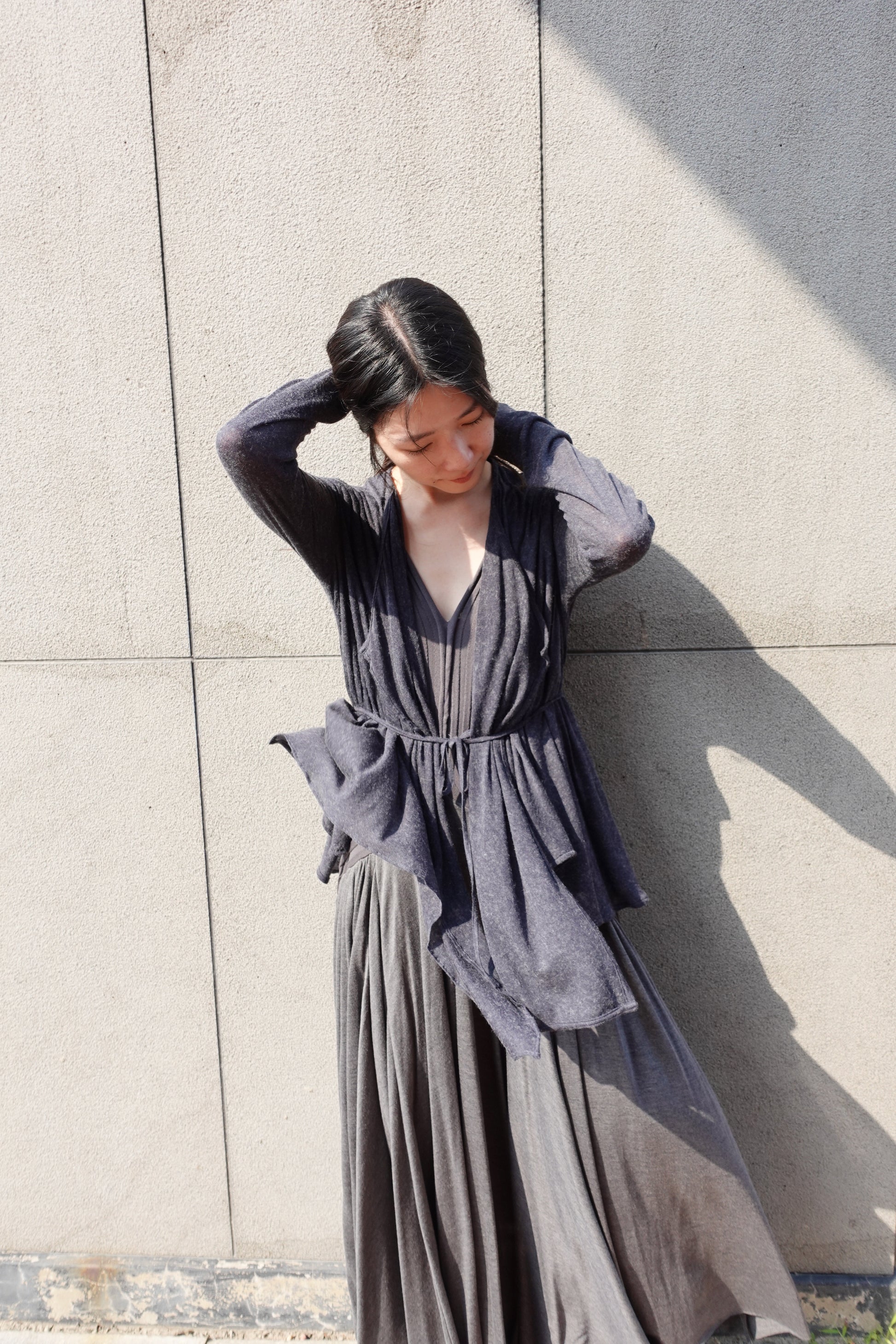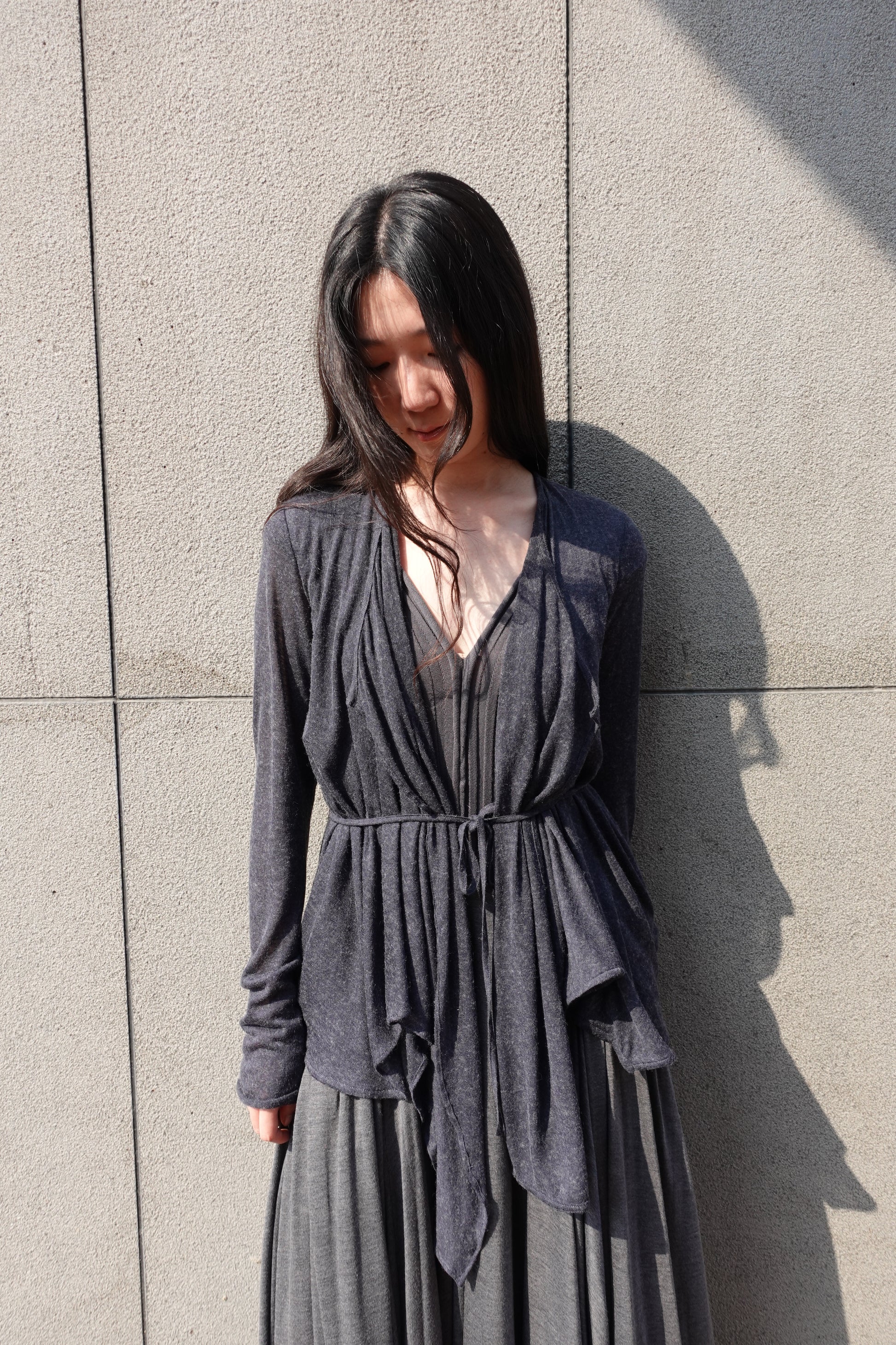 DRAPE 011 'Disheveled Drape Sheer Wool Cardigan'