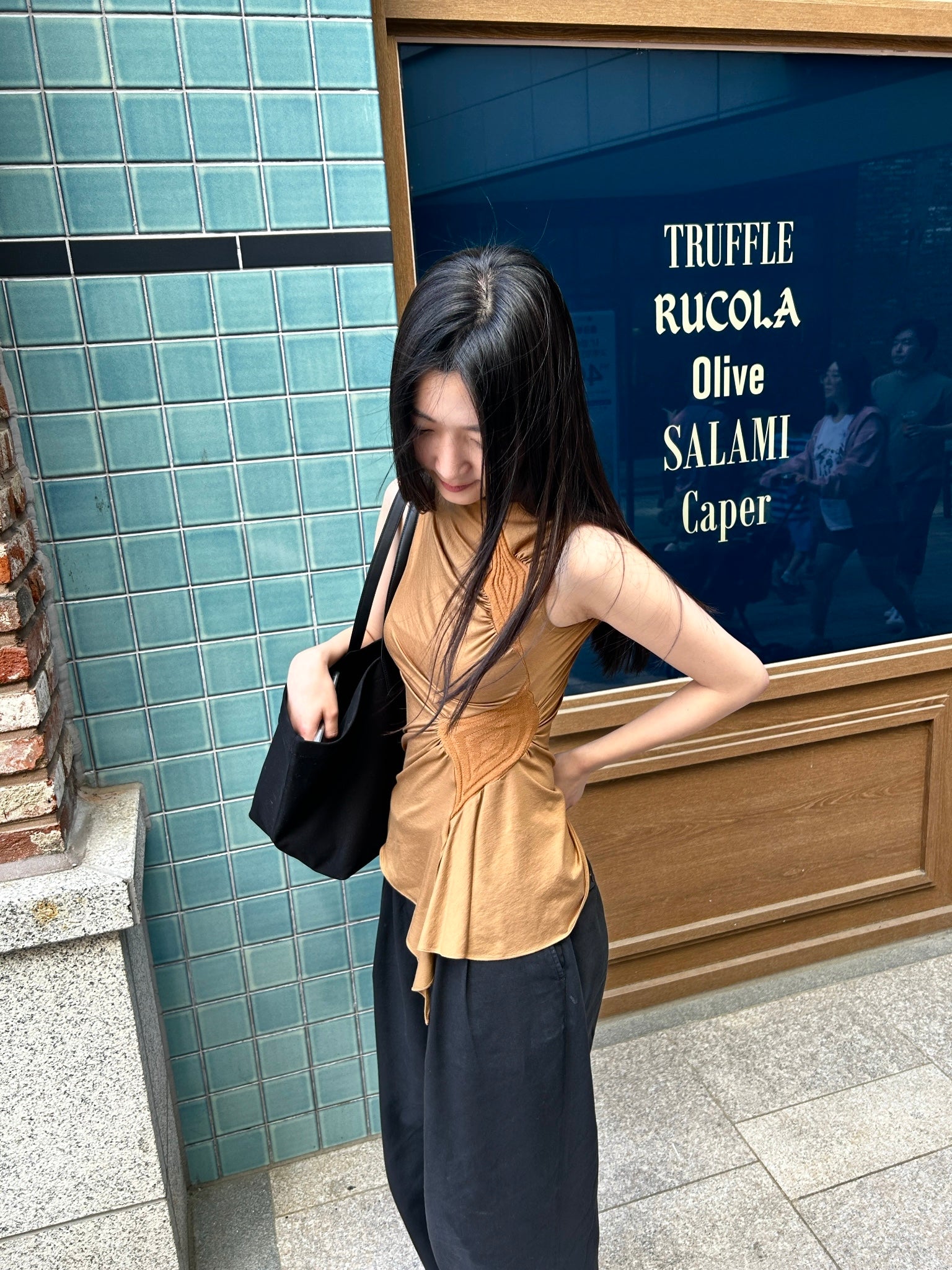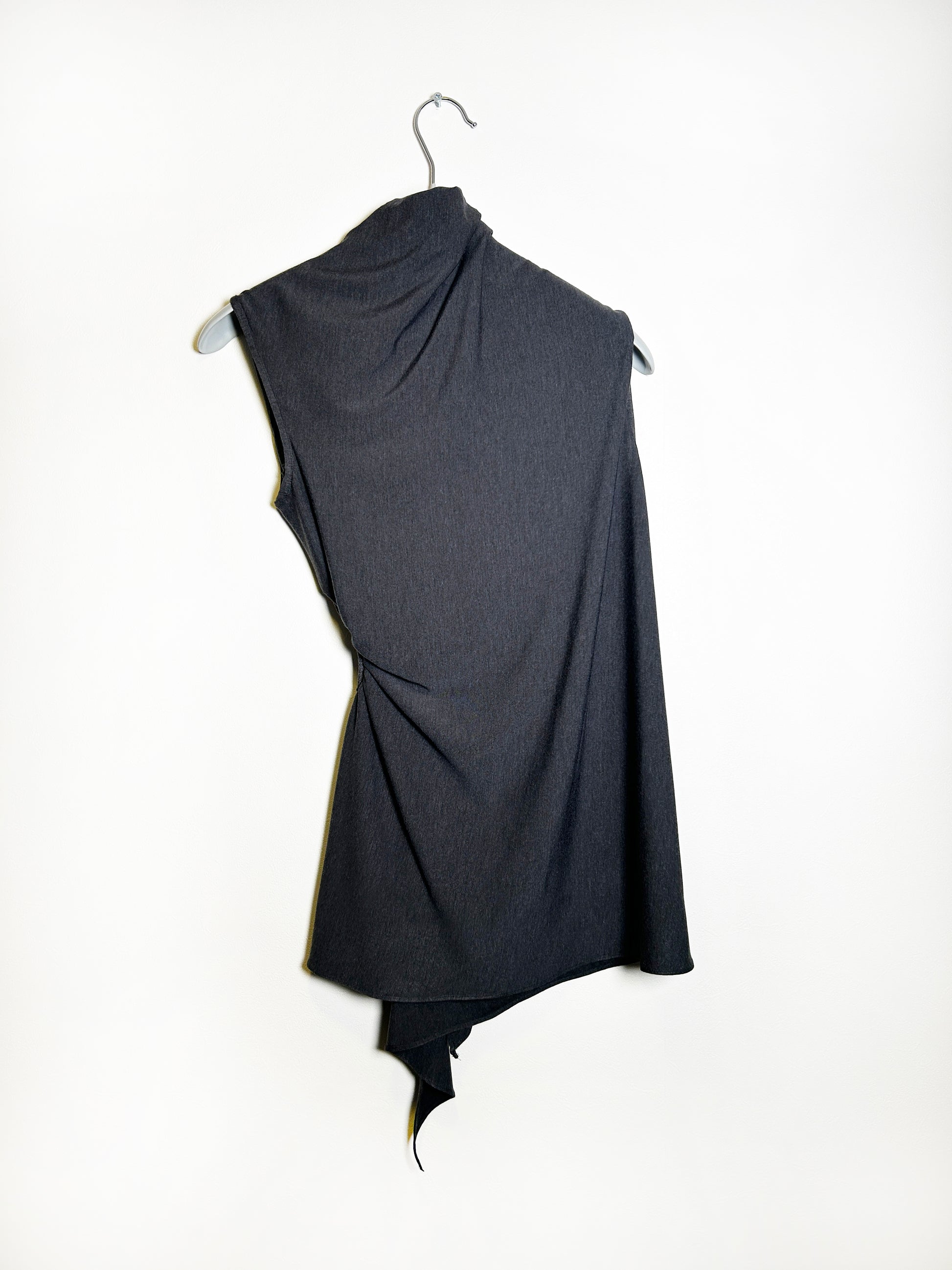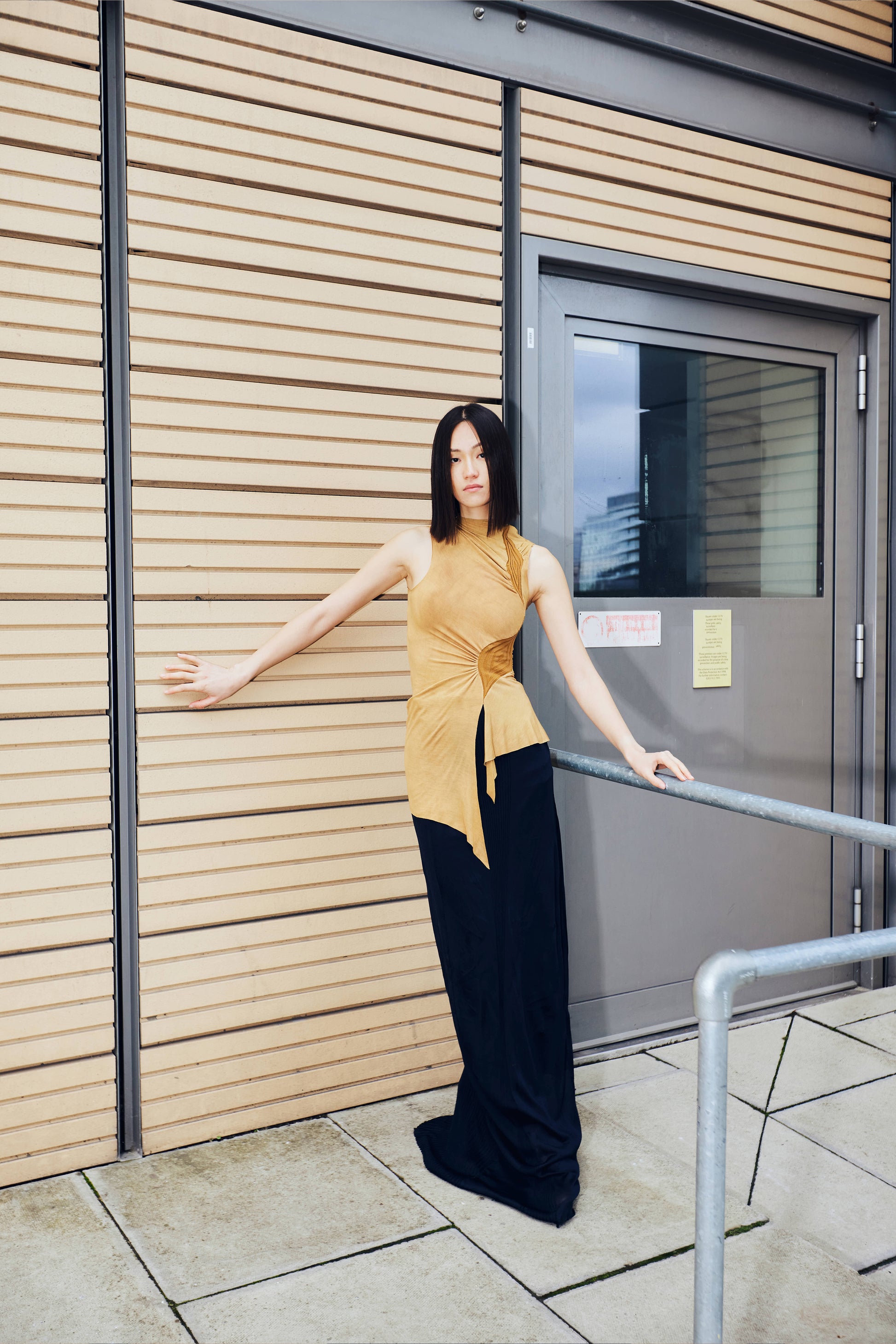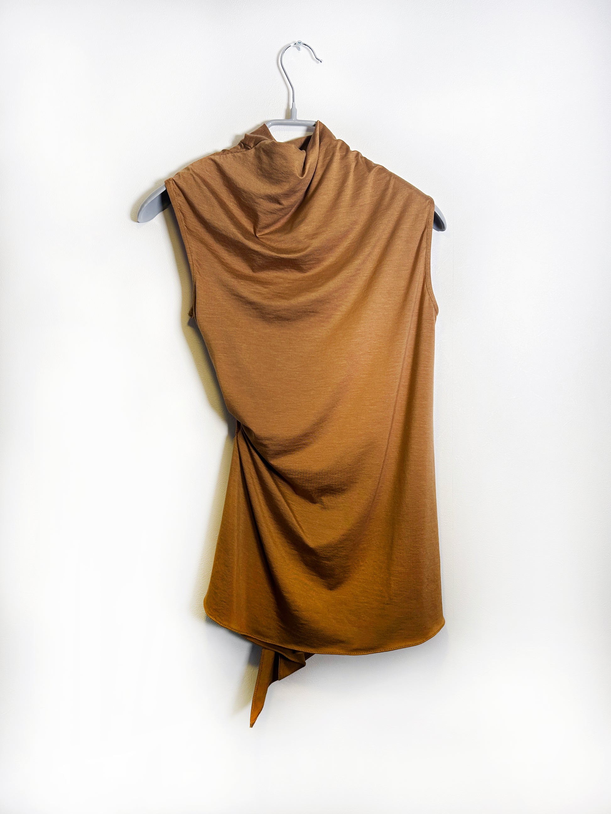 러우미에의 첫 번째 아카이브이자 시그니처인 다이아몬드 니트와 소프트한 비스코스 져지로 구성된 디자인 입니다. 섬세한 라인으로 구성된 소프트한 슬리브리스 탑입니다. 다이아몬드 모양의 리브 니트가 바디 실루엣을 따라 유려하게 흐르며, 함께 봉제된 셔링 디테일이 여성의 몸을 부드럽게 감싸줍니다. 밑단은 비대칭으로 디자인되어 다양한 하의와 자연스럽게 어우러집니다. 하프넥으로 디자인된 네크라인은 라벨이 안쪽으로 들어가게 접어서 연출할 경우 사선 라인의 하프넥으로 연출할 수 있으며, 겉으로 접어 터틀넥 처럼 연출할 경우 로우컷의 마감이 보이며 러프한 느낌의 스타일링이 가능합니다.