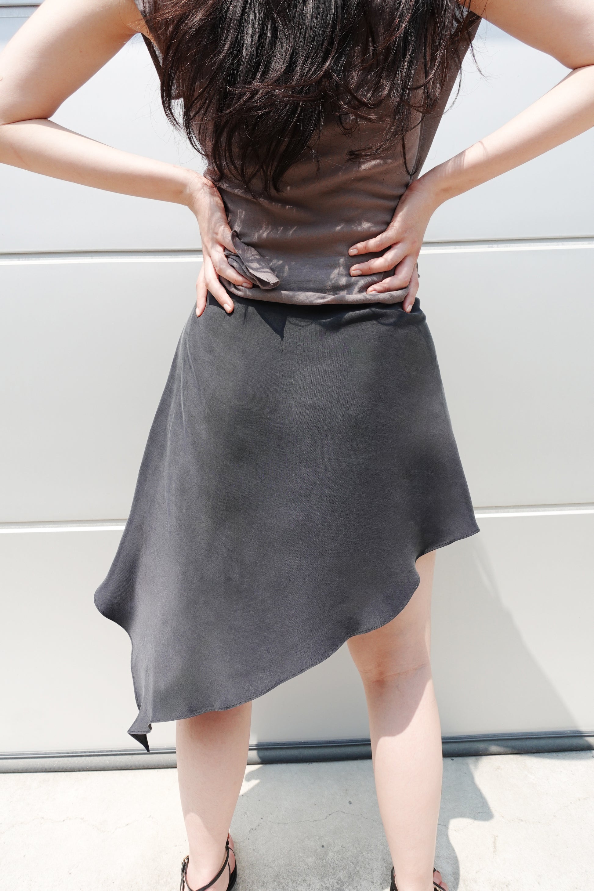 'Cupro Handkerchief Skirt in Washed Charcoal'