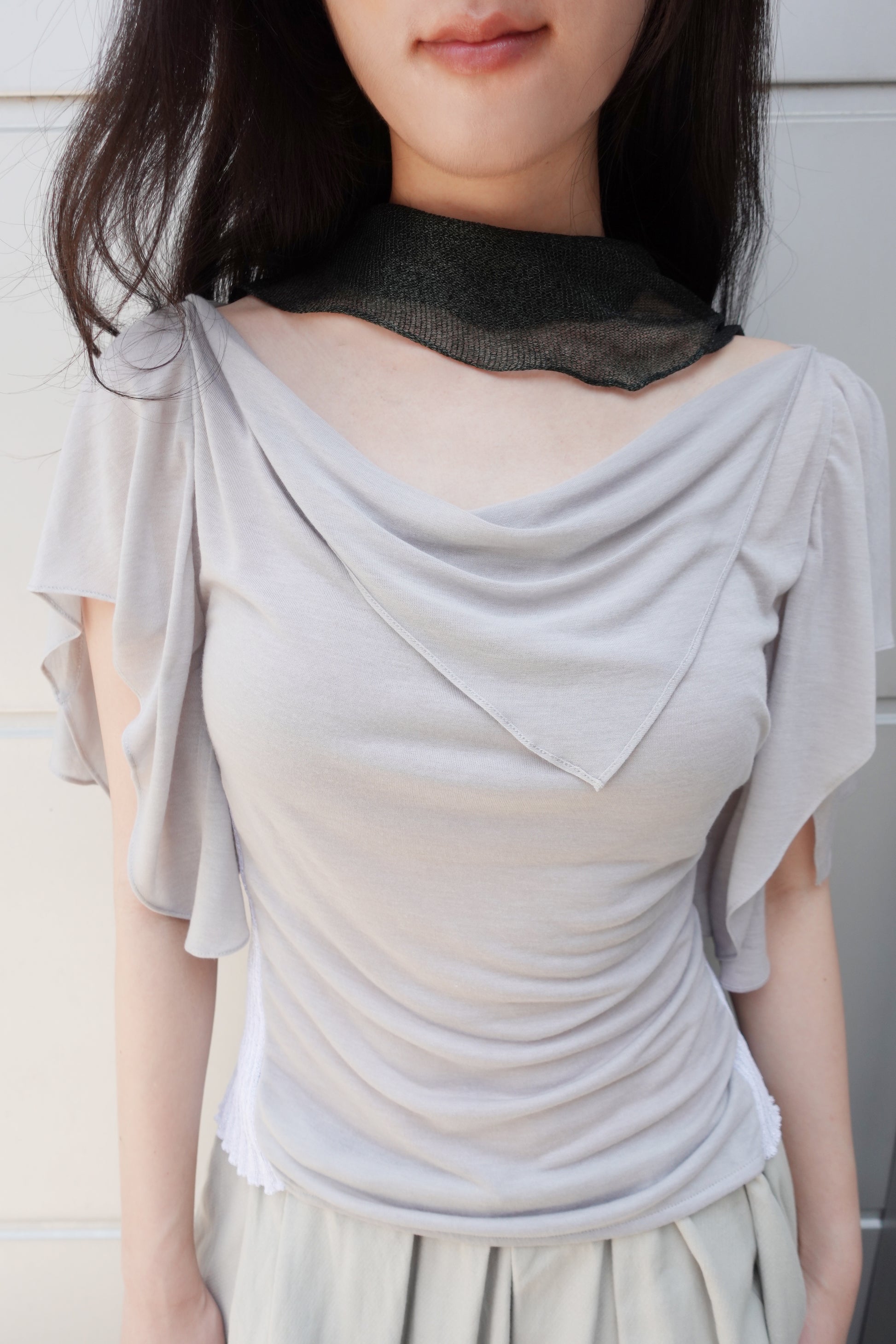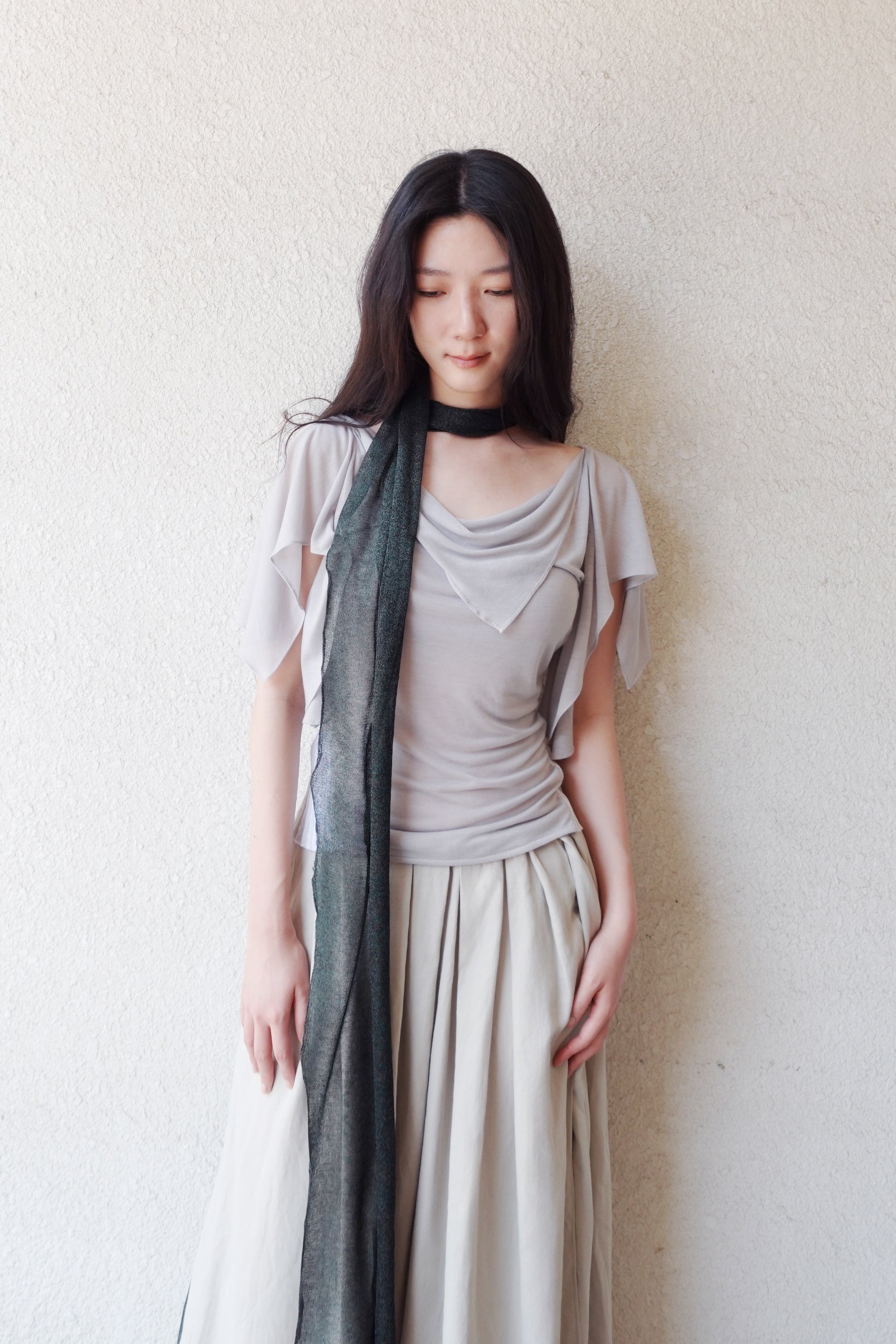 RIB 005 'Dancing Sleeves Back knit Jersey Top'