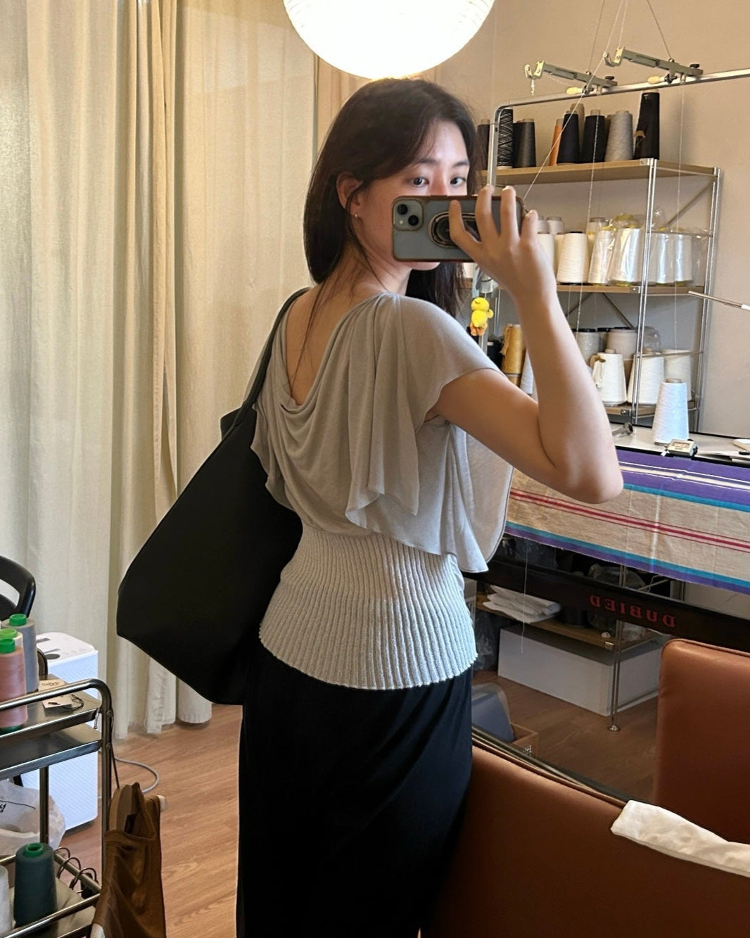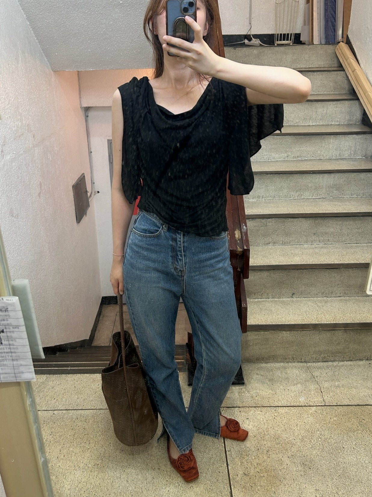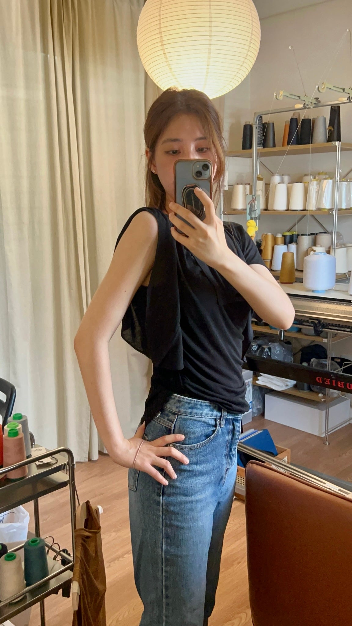 가벼운 코튼 블렌드 원단으로 제작된 반소매 니트 탑입니다. 비대칭 넥라인과 오프셋 숄더 솔기가 특징이며, 등판 리브 조직은 메탈 비스코스 원사가 각도에 따라 은은하게 빛을 반사합니다. 몸에 가까이 떨어지지만 전혀 조이지 않는 실루엣으로, 긴장감과 이완을 동시에 느낄 수 있는 무드를 제안합니다. 여유로운 핏으로 디자인 되었으며, 워시드 라이트 그레이와 블랙 두 컬러로 전개됩니다.