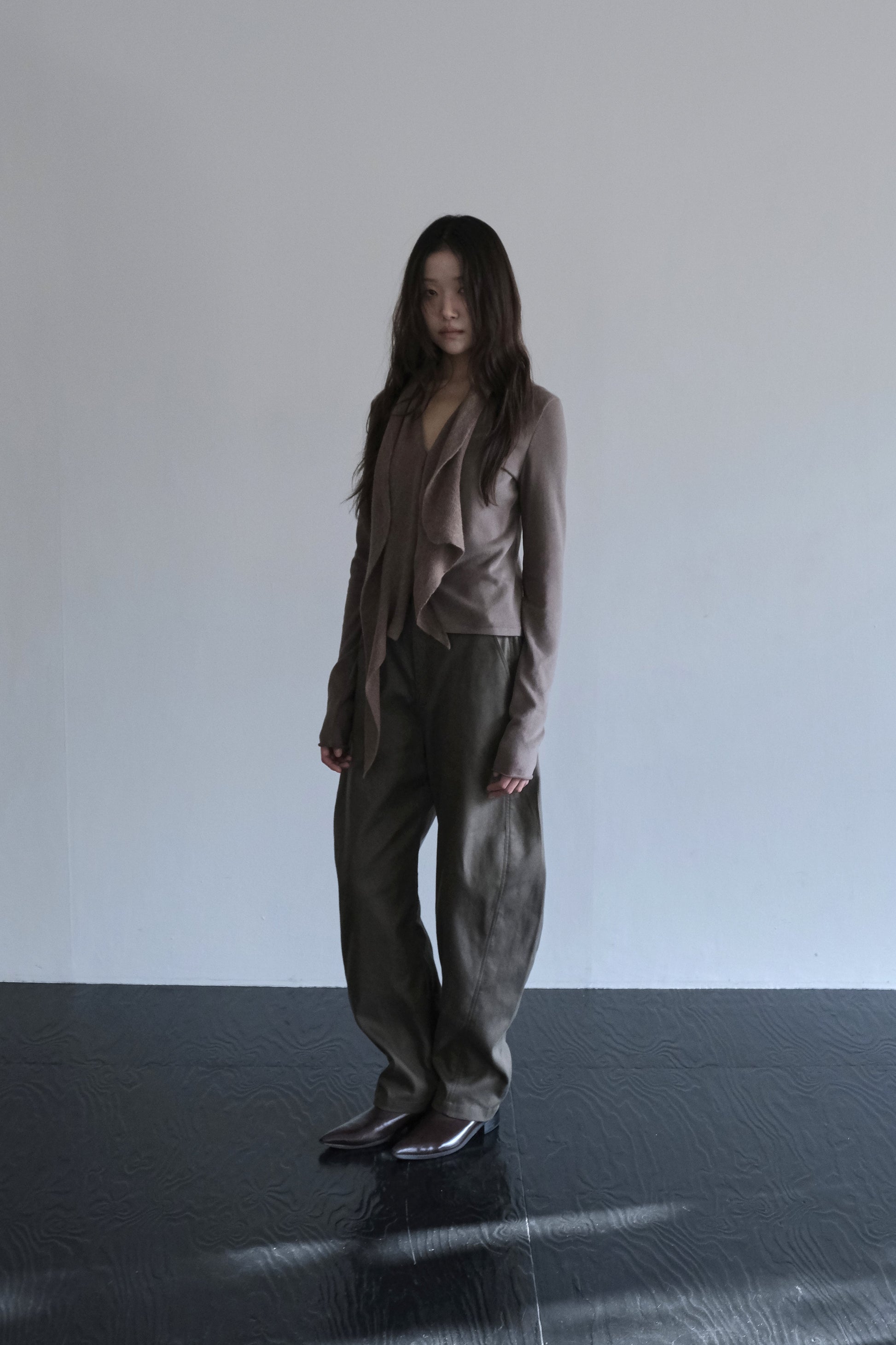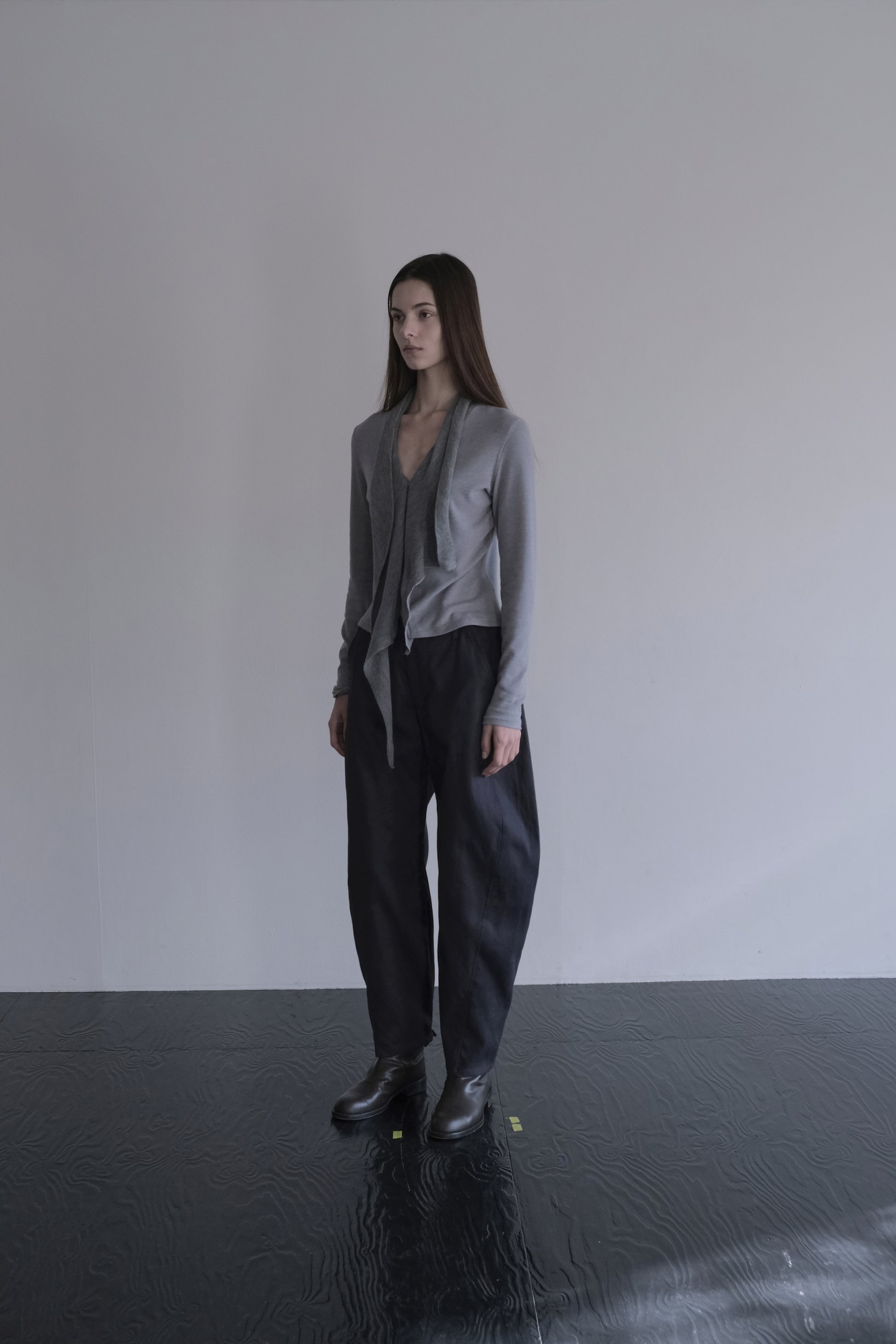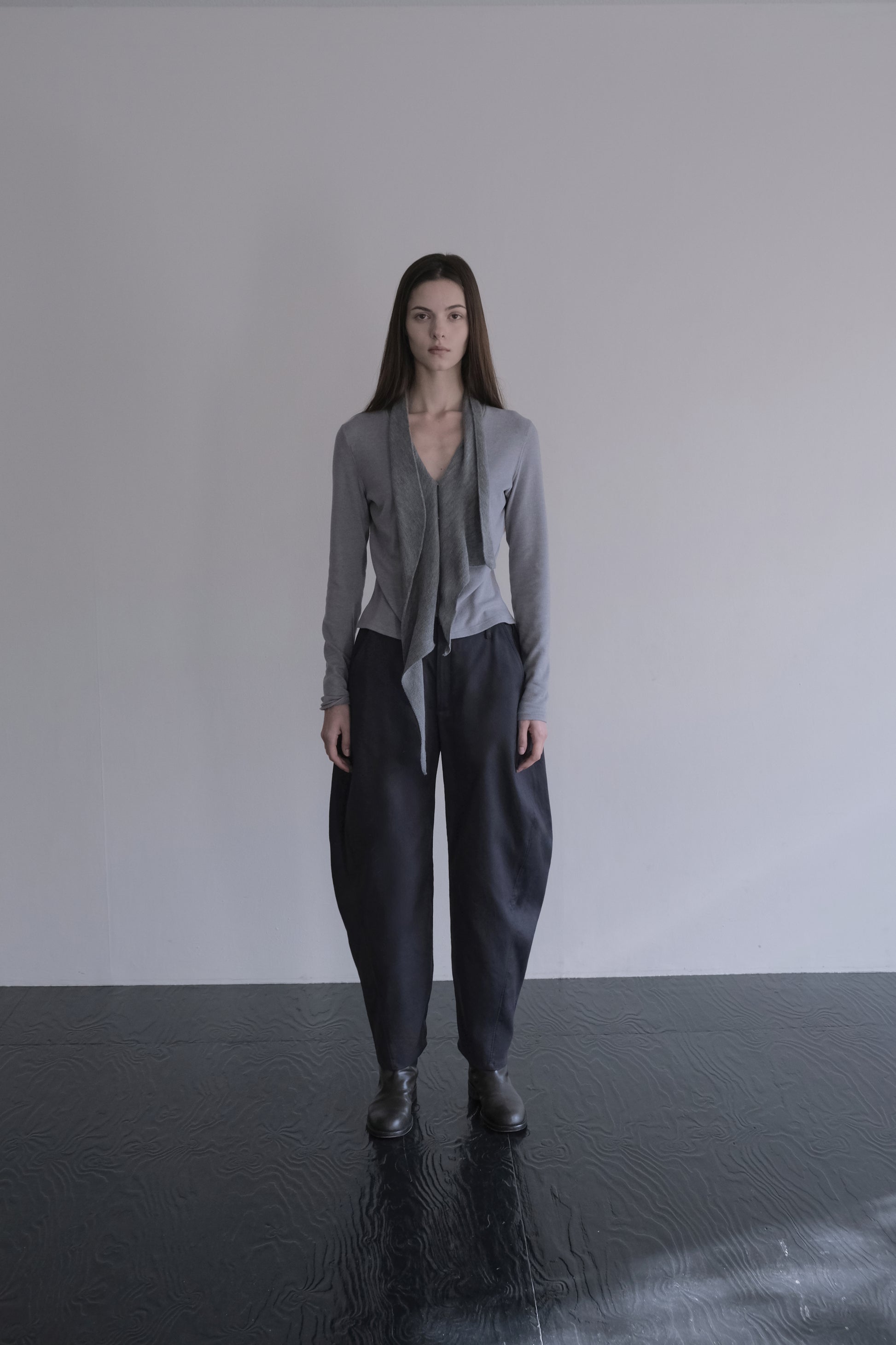 Balancing everyday comfort with a quiet structural presence, these trousers pair harmoniously with slim tops, knits, and outerwear of varying proportions.